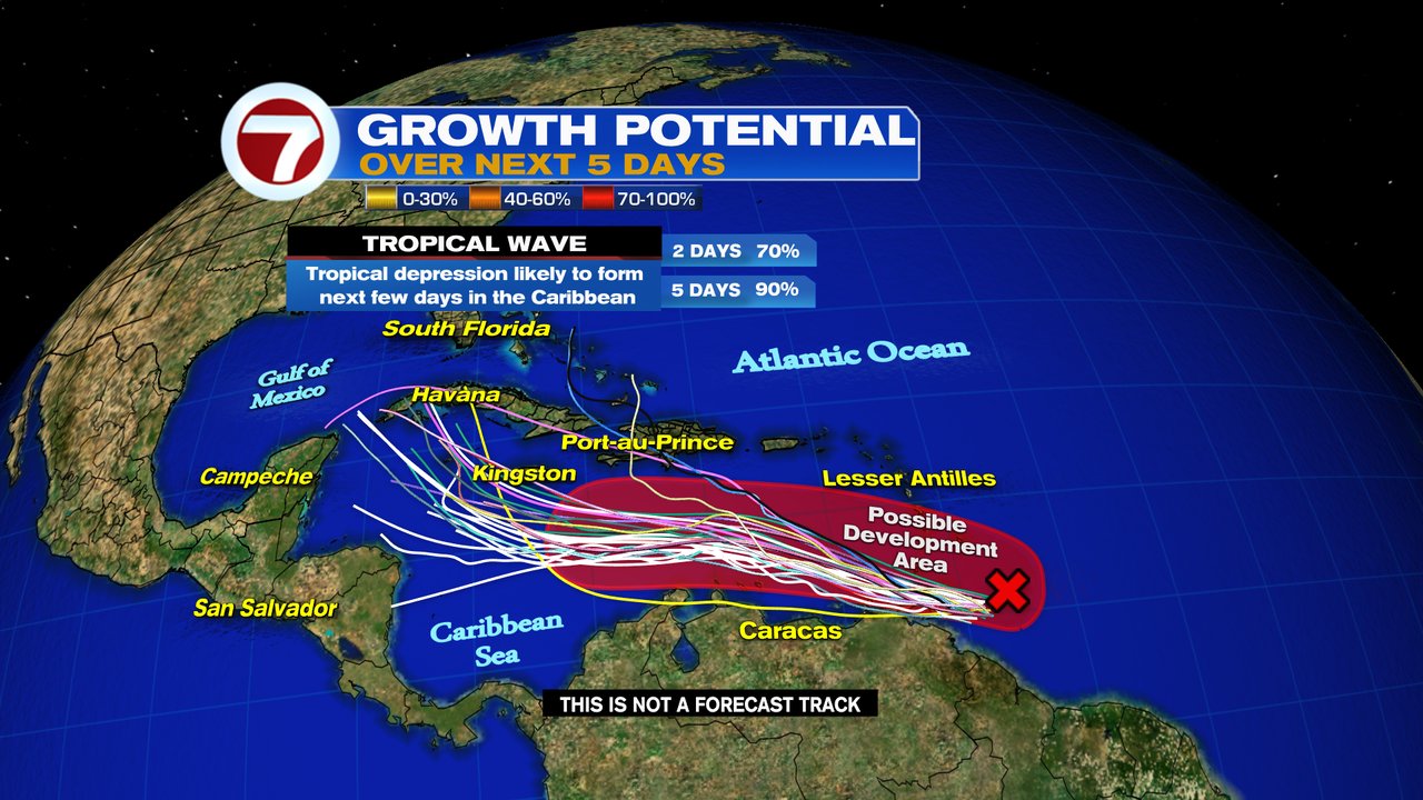 The models are coming into agreement more and more. On Thursday the spread was much wider with a few taking it into the Yucatan Peninsula, others into the northern Gulf of Mexico, and some into South Florida. The latests, suggest a NE turn into the Sunshine state. Where exactly it will make landfall is still not certain.