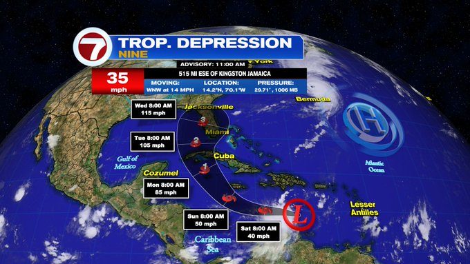 As of 5 am Friday morning, The National Hurricane Center (NHC) elevated the status of an area of low pressure in the Caribbean Sea to Tropical Depression Nine. The forecast track places South Florida in the Cone of Concern.
